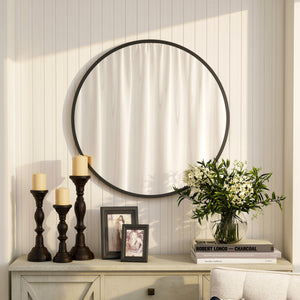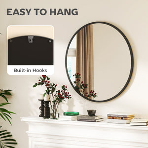 30" Round Mirror, Bathroom Wall Mirror with Metal Frame, Decorative Vanity Mirror for Living Room, Bedroom, Black