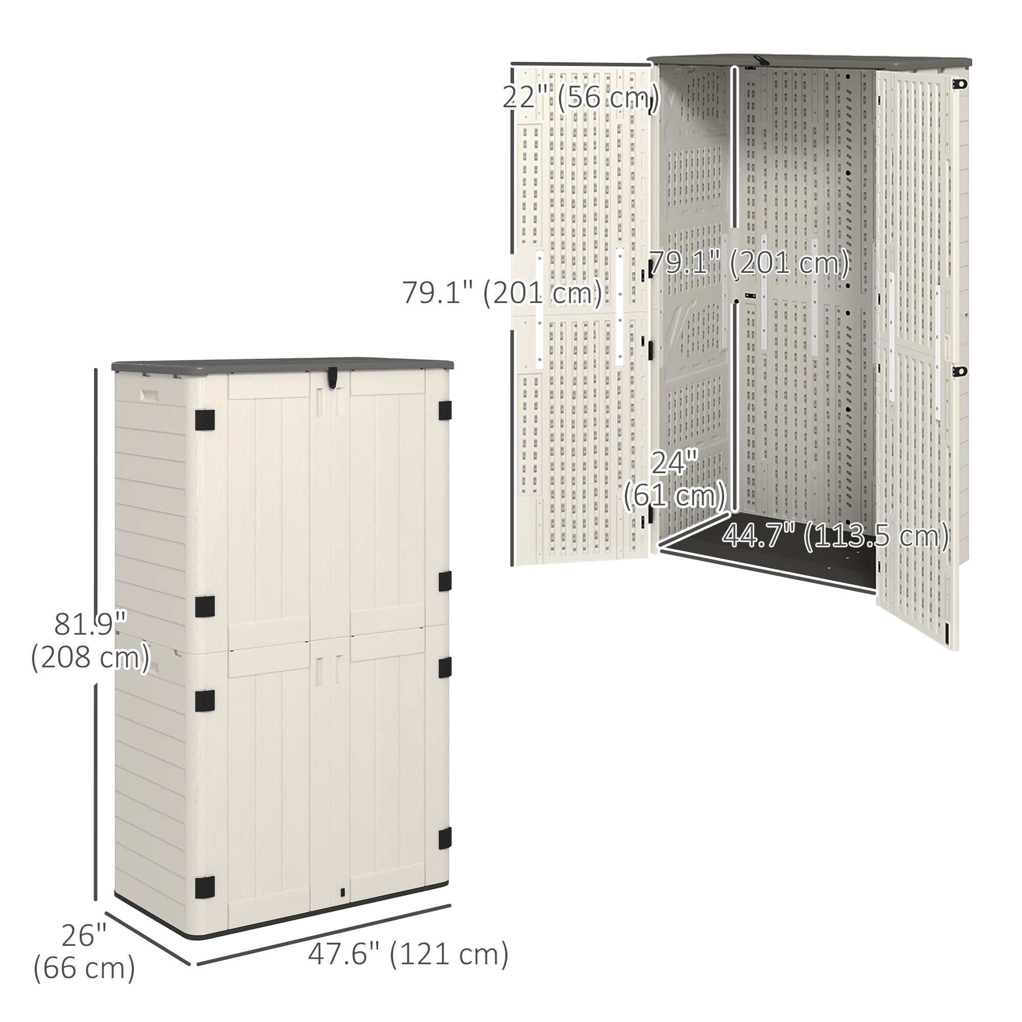 - • Overall Dimension: 47.6" W x 26" D x 81.9" H (121 x 66 x 208 cm)
