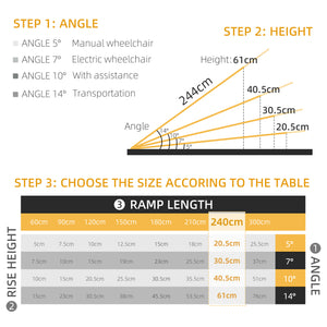 - • Note: Step 1. Measure the rise of your application. Step 2. Pick the proper ramp length based on your height of use.