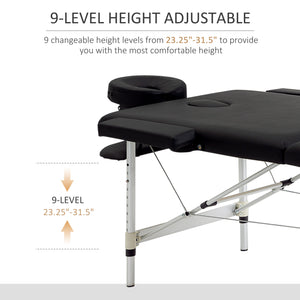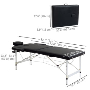 83" 2 Section Foldable Massage Table Professional Salon SPA Facial Couch Tatoo Bed with Carry Bag Black