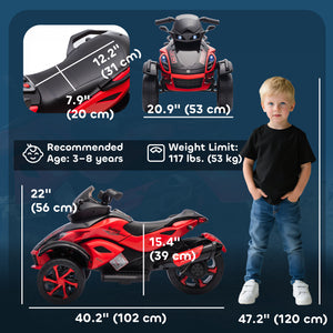 Qaba 12V Kids ATV with Suspension Wheels, Soft Start, LED Lights, Music, Red