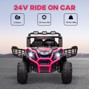 Qaba 2 Seater 24V Electric Car for Kids w/ Remote Control, 3 Speed, LED Lights, Music, Horn, Spring Suspension, Pink