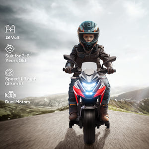 Qaba Honda Licensed 12V Ride on Motorbike for Kids with Headlights Music Training Wheels, for 3-6 Years, Red