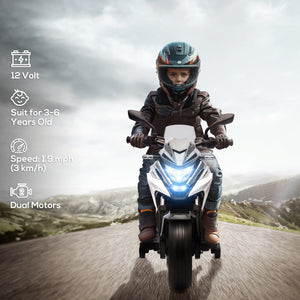 Qaba Honda Licensed 12V Ride on Motorbike for Kids with Headlights Music Training Wheels, for 3-6 Years, White