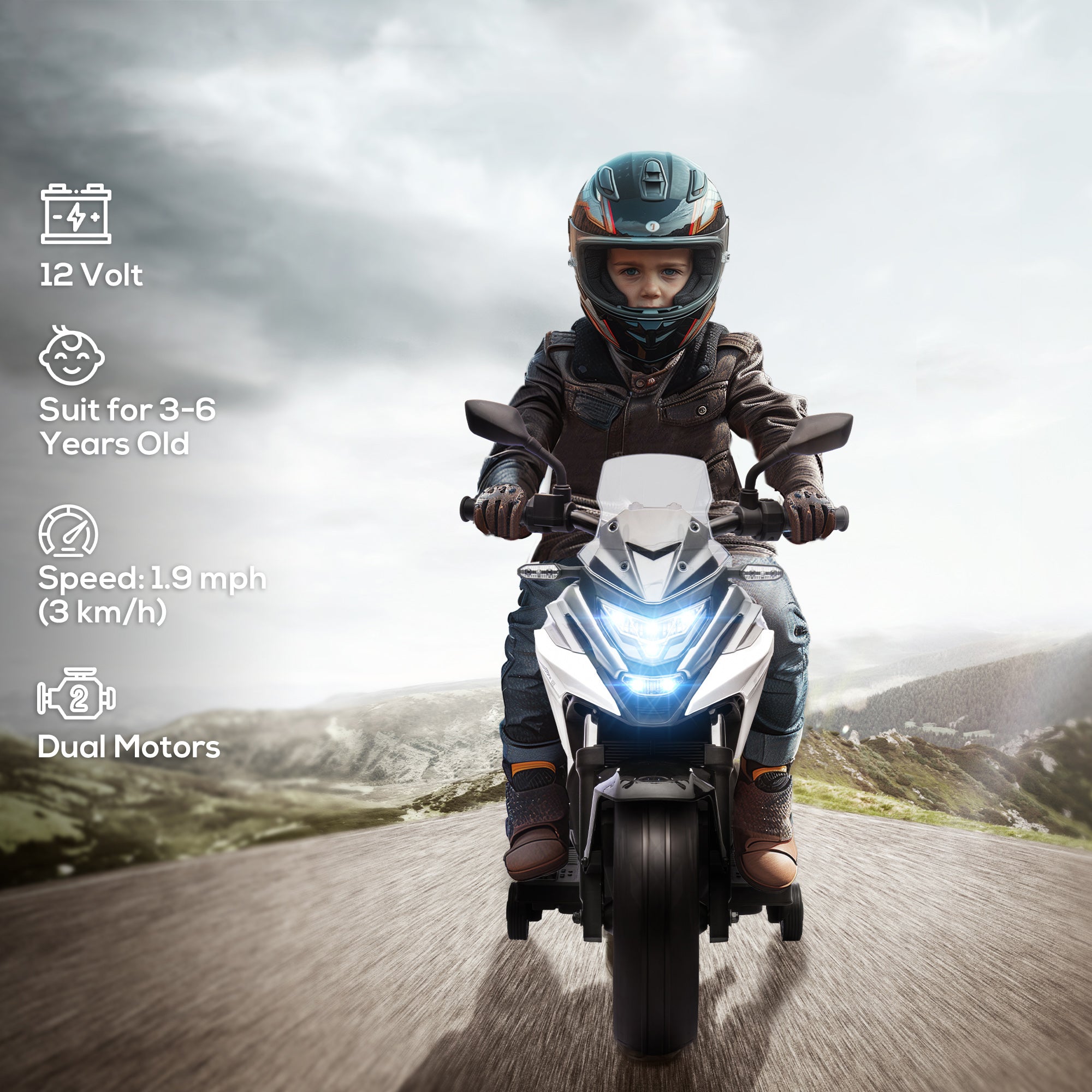 Rev up the fun with the Qaba Honda licensed electric motorcycle for kids. With a simple a button start, this kids motorcycle lights up the adventure with working headlights and tunes, adding a beat to their ride. Designed to roll smoothly on asphalt, brick, or cement, this electric bike for kids comes with two training wheels, ensuring a safe, thrilling ride at 1.9 mph (3 km/h).