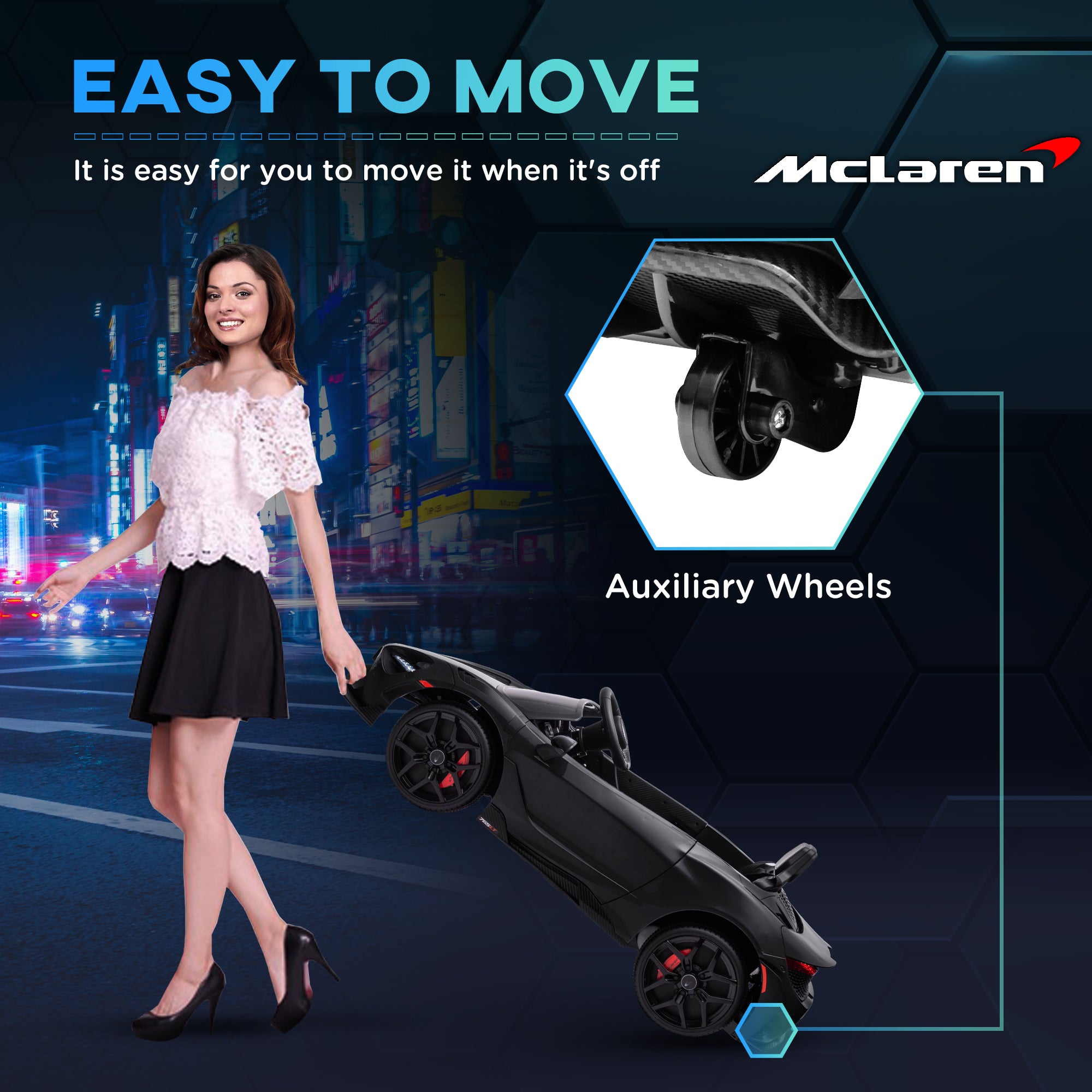 Qaba McLaren 765LT Licensed 12V Kids Electric Car w/ Scissor Doors, Transport Wheels, Remote, Slow Start, Music Horn Black