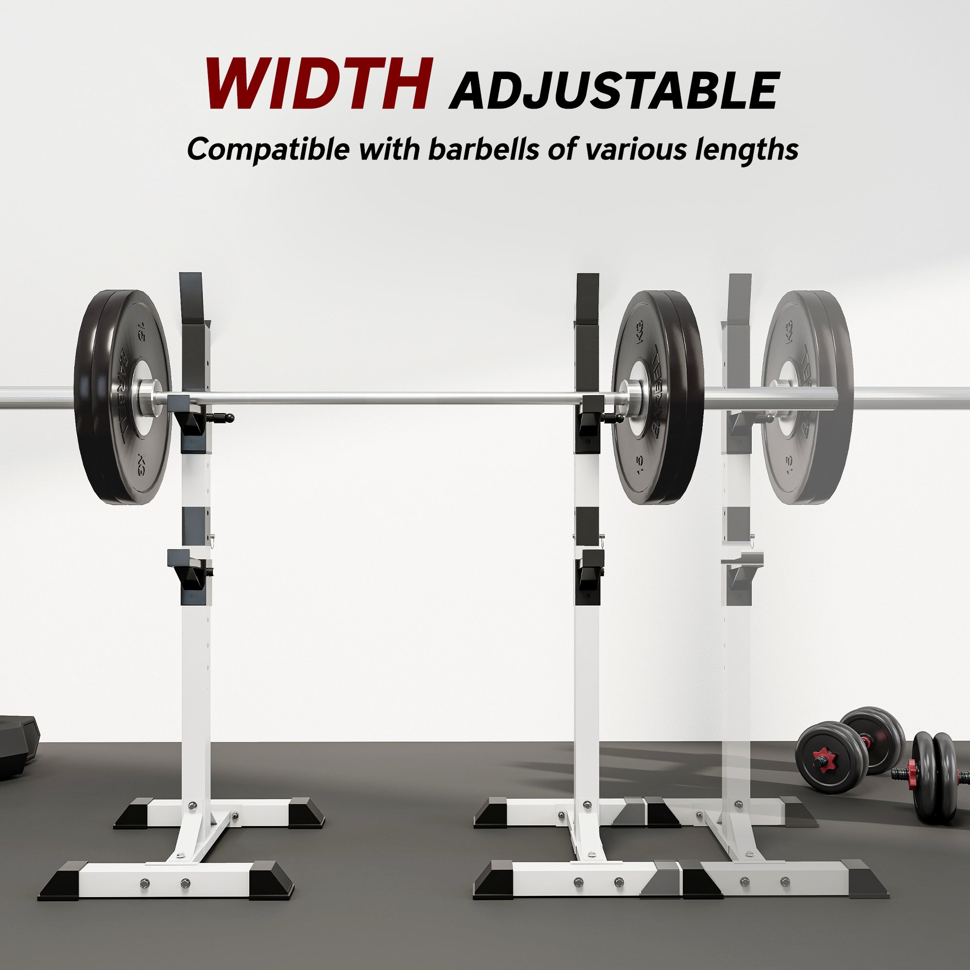 Soozier Adjustable Barbell Rack Stable Power Squat Stand Portable 2 Bars Barbell Holder Weight Rack, Black and White