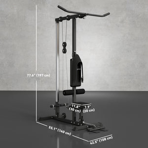 Soozier Lat Pull Down Machine, High / Low Pulley Machine with Adjustable Seat and Flip-Up Footplate, Black