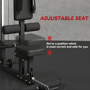 Look to this Soozier lat pulldown machine to get your gym fix at home. With a steel frame for a tough core structure, the home multi gym comes with a pull-down bar, a low-row bar and a padded seat - easy for you to work on your upper body in whatever routine suits you. Seat height is adjustable to four different levels to find the position most comfortable for you. It can hold weight plates up to 110lbs (50kg) and is finished with a wide base for the power cage's balance.